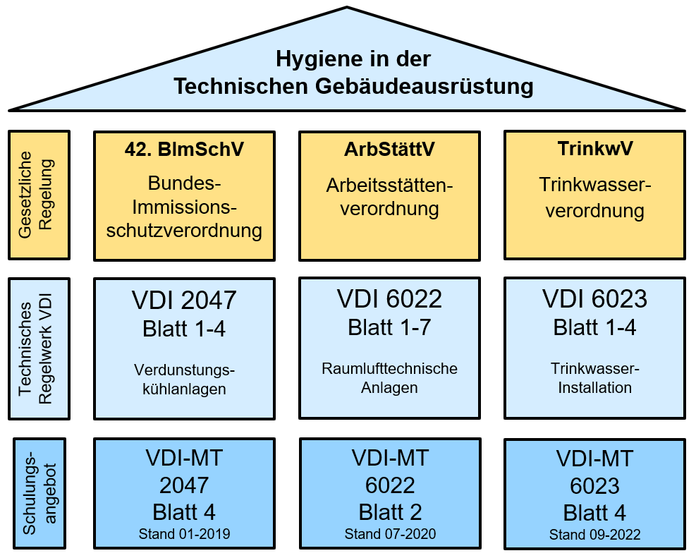 Das ist der wahre Wert von gesetzlichen Regelungen und technischen Regeln! Der VDI ist der einzige Regelsetzer, der über die gesamte Bandbereite in der TGA Hygienerichtlinienien mit einem entsprechenden Schulungsangebot erstellt hat:
